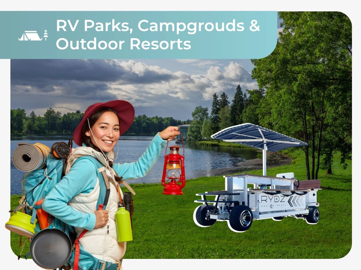 Whether you're managing a sprawling RV park, a cozy campground, or a luxurious outdoor resort, RYDZ Low Speed Vehicles (LSV) deliver the perfect blend of function and fun. Our low-speed vehicles (LSVs) are designed to handle the great outdoors while offering a comfortable, smooth ride for guests of all ages.