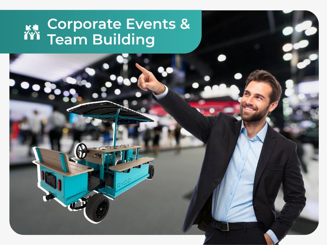 From conferences and trade shows to company retreats and brand activations, the RYDZ LSV delivers a fresh and unexpected way to elevate your corporate event. It's more than transportation—it's a conversation piece, a mobile lounge, and a branded experience all in one.