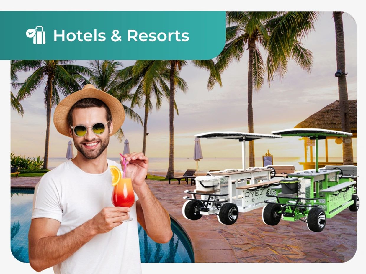 Whether you're managing a luxury beachfront resort, a boutique hotel, or a large event property, the RYDZ LSV offers a unique and memorable way to elevate your guest experience. Designed for both fun and function, RYDZ is more than just transportation — it’s a mobile destination.